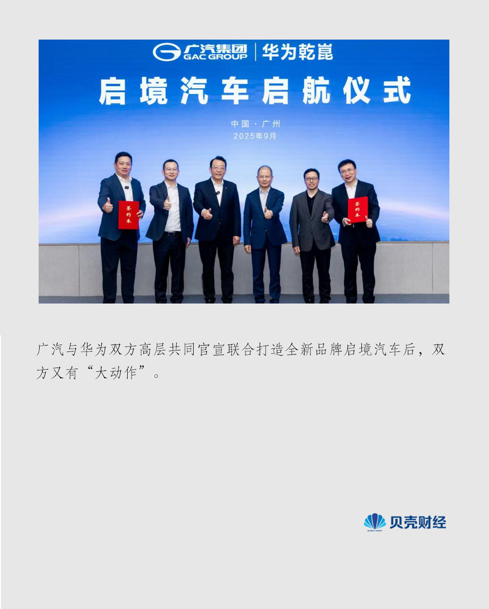 广汽与华为双方高层共同官宣联合打造全新品牌启境汽车后,双方又有“大动作”。