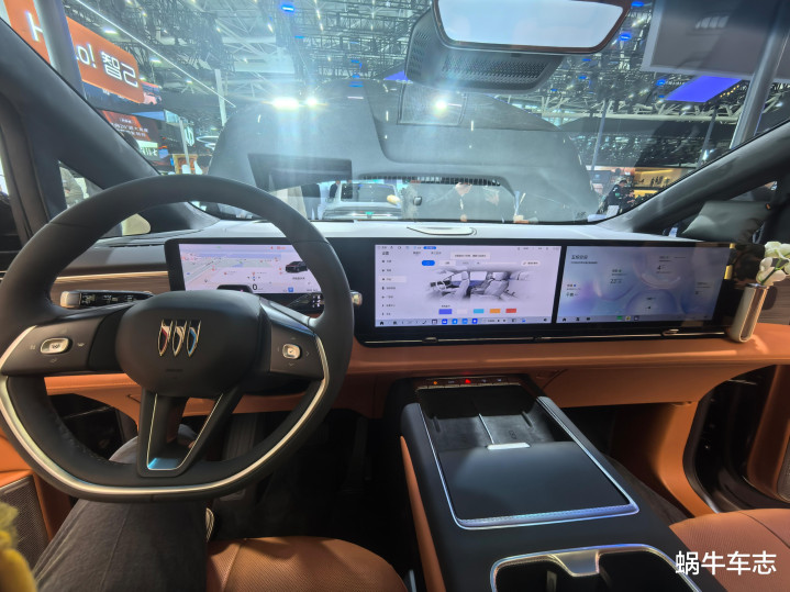 先看车内,中控为16.3英寸双联屏+10.25英寸仪表盘+50英寸AR-HUD,配备8775P芯片。后排还有一块21英寸4K后舱屏,搭配两款5.5英寸管家屏,真把国产新势力“满车都是屏”的套路给学明白了。