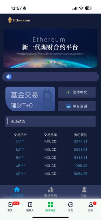下载APP后显示“理财合约平台”。
