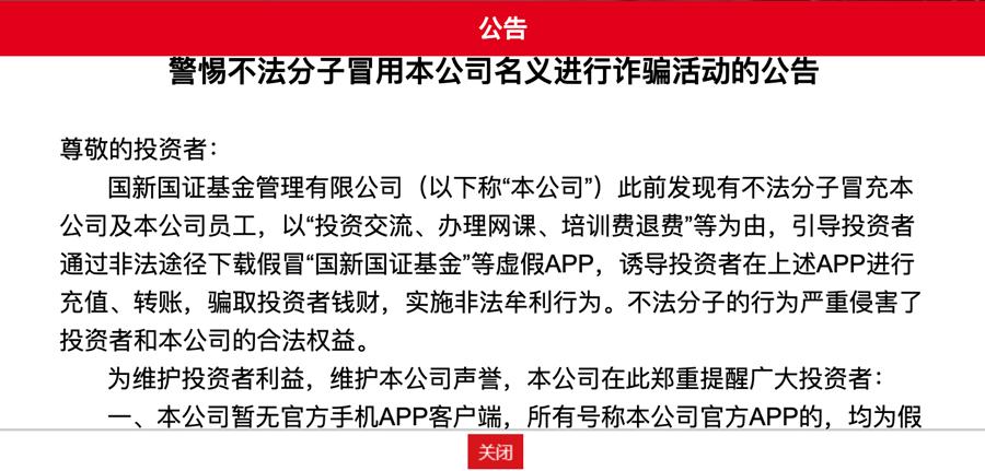 而十甫寸被骗的“国新国证基金管理有限公司”,记者注意到,去年12月31日,该公司已在官网发布关于提醒投资者警惕不法分子冒用本公司名义进行诈骗活动的公告,表示公司没有手机端APP,上述“国新清算”APP目前也已停止运营。正值研究生招生考试结束时期,近期也有不少考研机构遭到“冒名”诈骗,受害群体十分广泛。